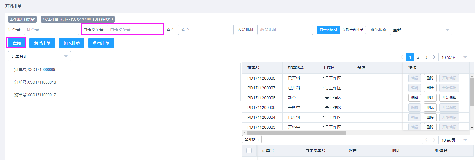 排单新增成功,会自动生成排单号,并且在开料排单界面右边显示