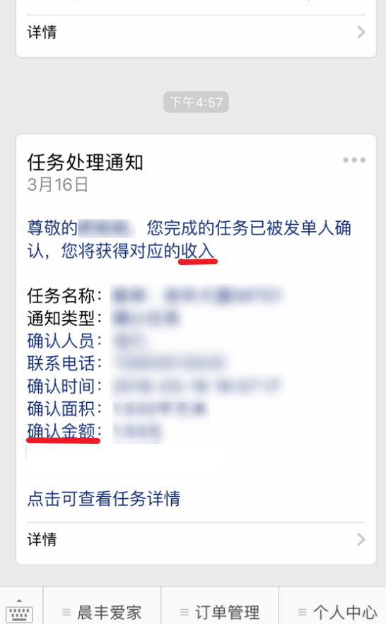 订单任务被确认之后,系统会自动扣款,付款给设计师,设计师也会收到相关的微信推送消息;