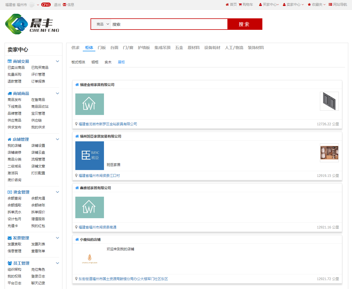 保存成功后,其他用户在供应链的柜体/展柜分类下可查看到该店铺
