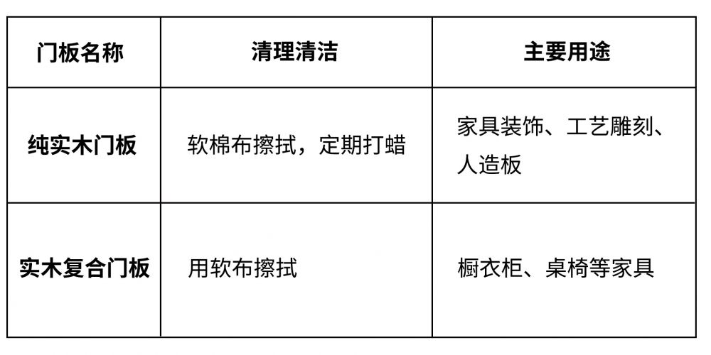 我们再探究一下2款门板清理清洁、主要用途的要素(列表如下):