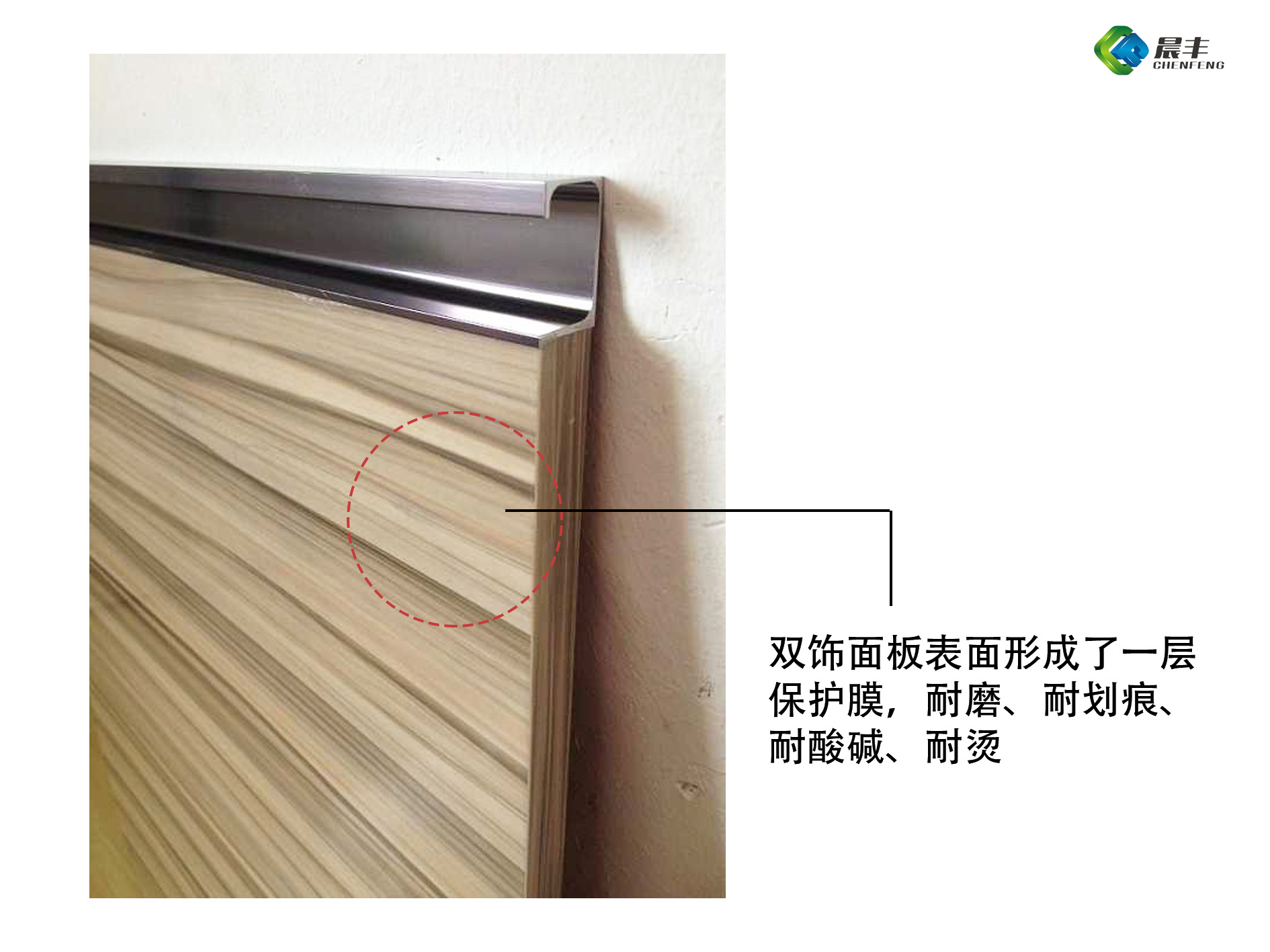 橱柜双饰面板表面形成了一层保护膜,耐磨、耐划痕、耐酸碱、耐烫,日常清洁保养中的注意事项相对来说也会比较少。
