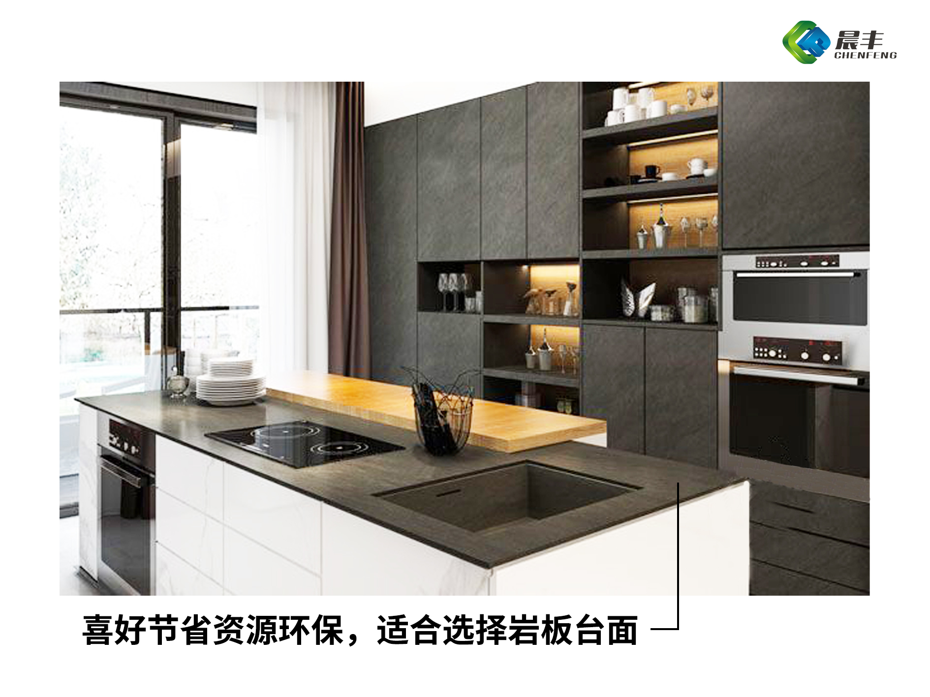 (4)喜好节省资源,环保,会有一些小惊喜优势的,适合选择岩板台面。