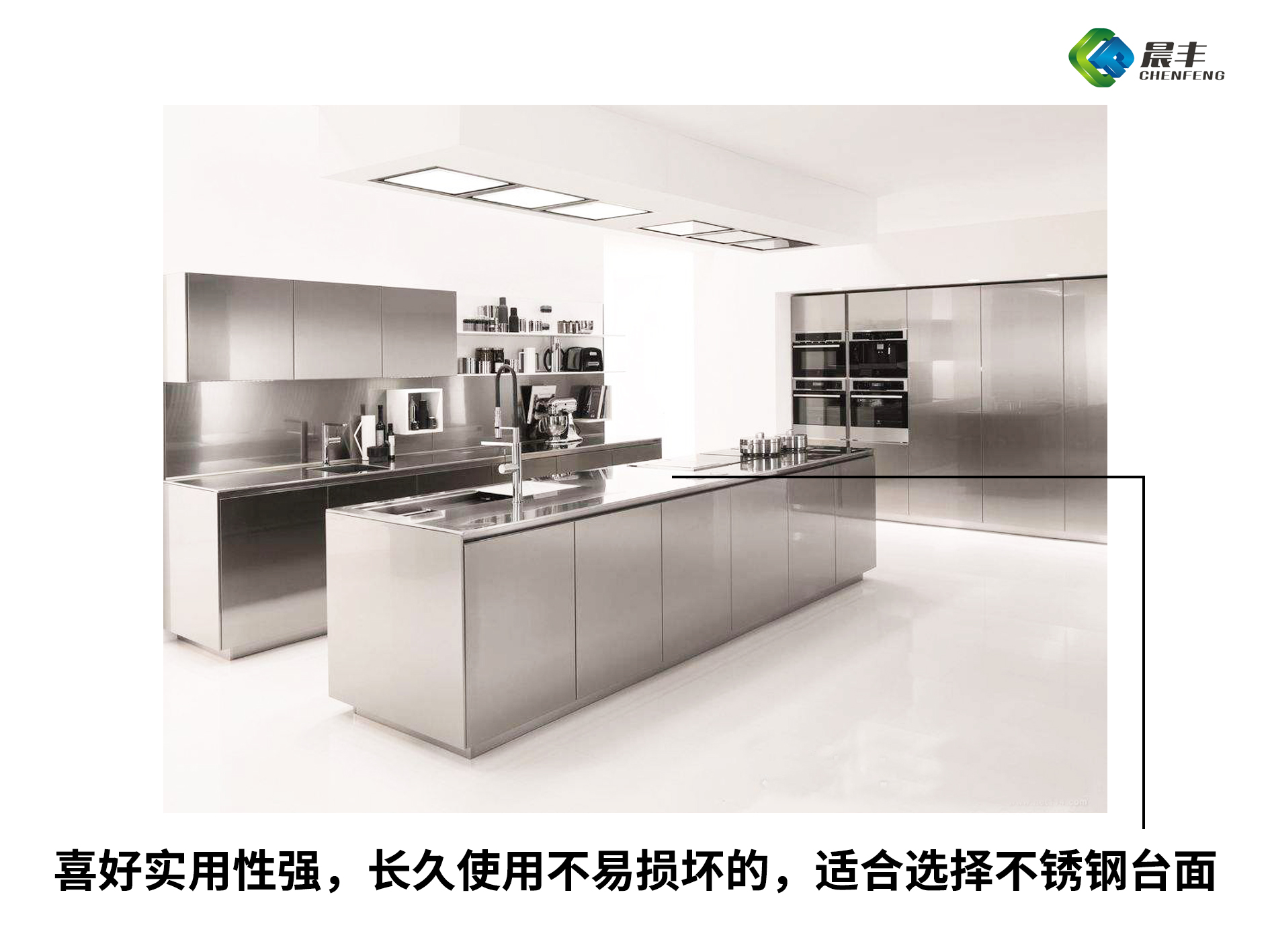 (3)喜好实用性强,长久使用不易损坏的,适合选择不锈钢台面;