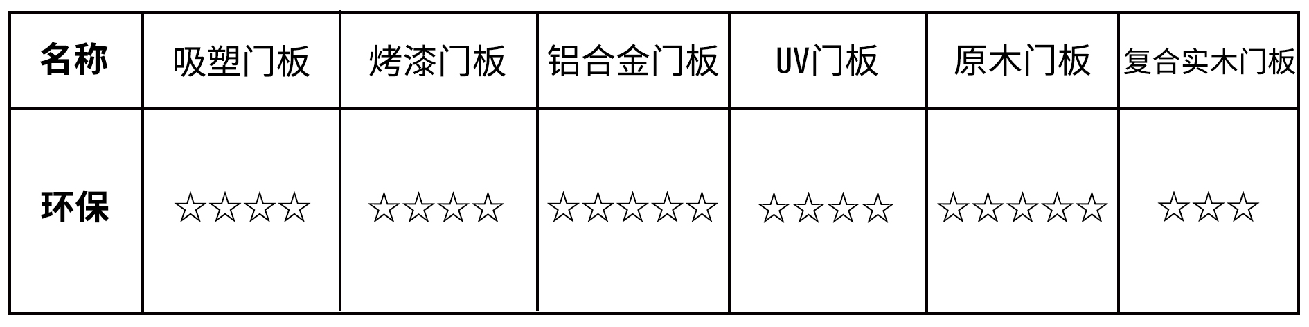以甲醛释放量为要素评判依据,得出上述星级排列,这里需要特殊说明的是,吸塑门板表格中的星级是由极其优质的工艺制作而成,普遍的市场环保等级仅可达到三星标准。