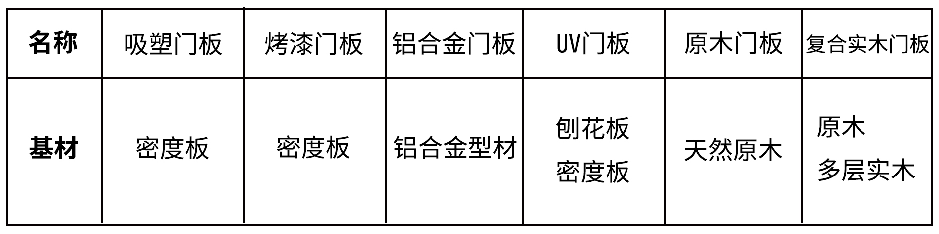 关注品质要素的选购,一般是从基材入手,上述6款门板的基材主要是:
