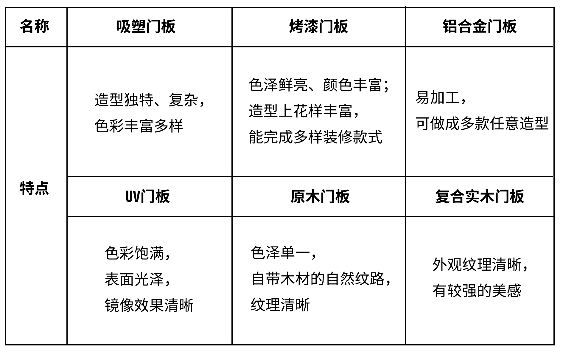 品质选购排行榜:原木门板>铝合金门板>复合实木门板>烤漆门板>吸塑门板>UV门板